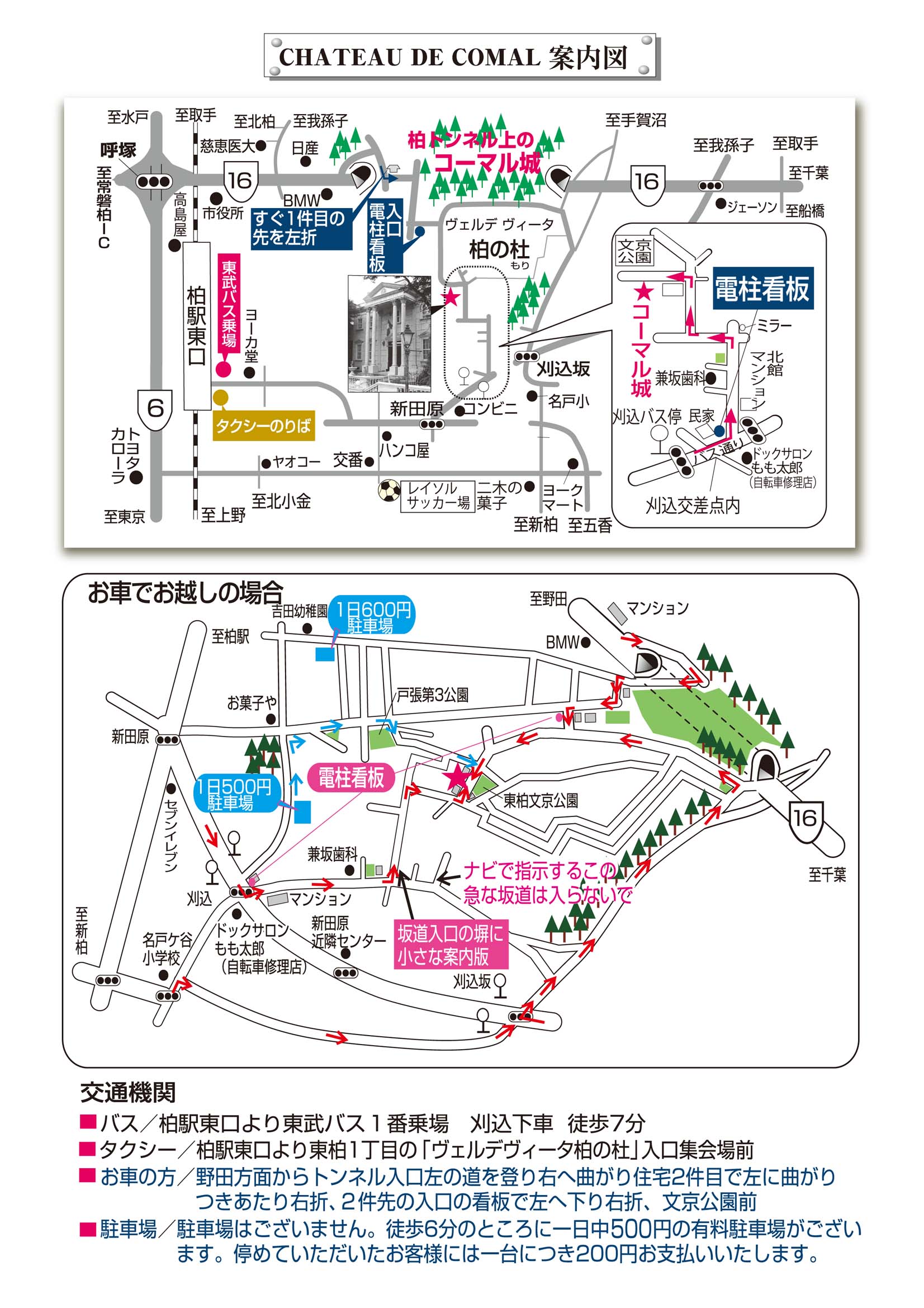 JR常磐線(快速)で上野駅から30分 柏駅下車 東武野田線柏駅下車 柏駅東口より東武バスをご利用ください。1番乗り場 刈込下車徒歩5分